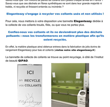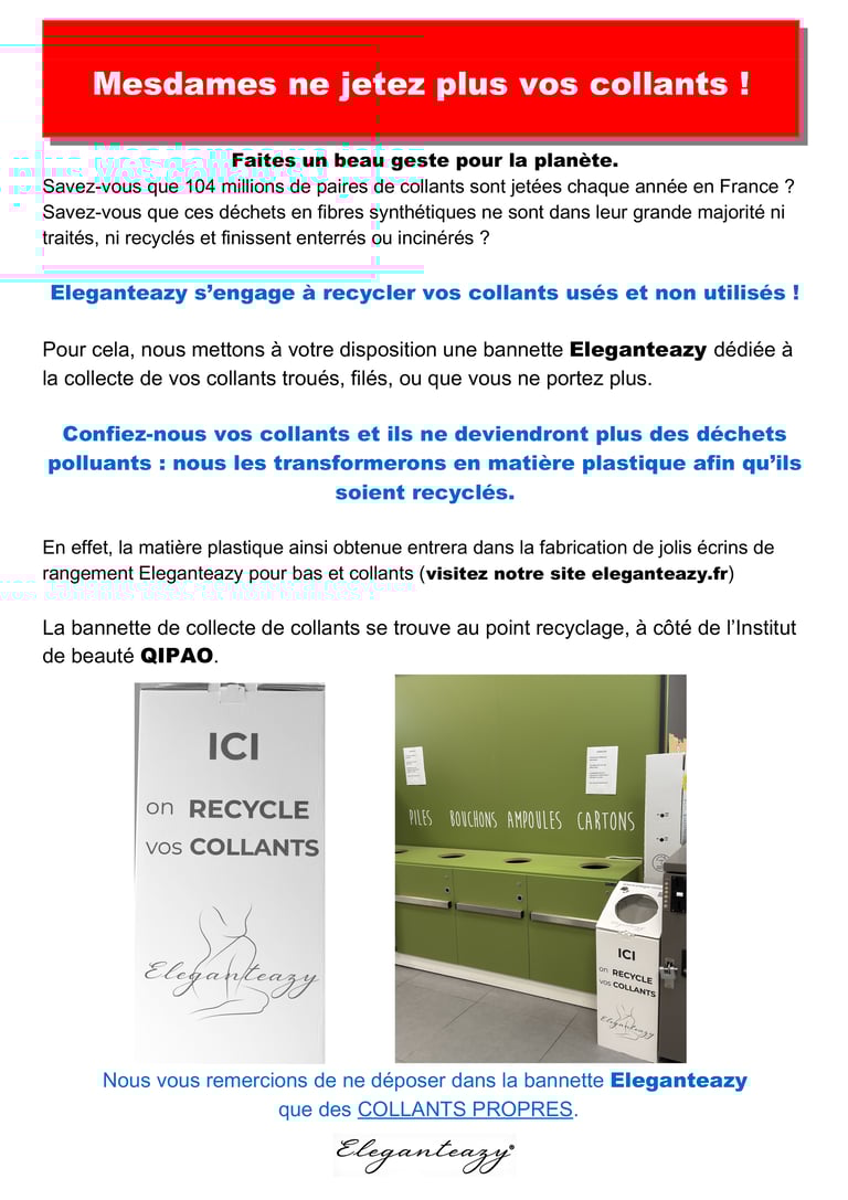 Demandez à vos proches, mères, sœurs, filles, amies, collègues, ... de ne plus jeter leurs collants usés et non utilisés,
